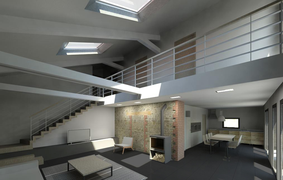 Le projet remanie totalement l’intérieur du volume afin de le transformer en habitation. Nous avons évidé la construction afin de n’en conserver qu’une coquille vide : la toiture et les trois murs porteurs.